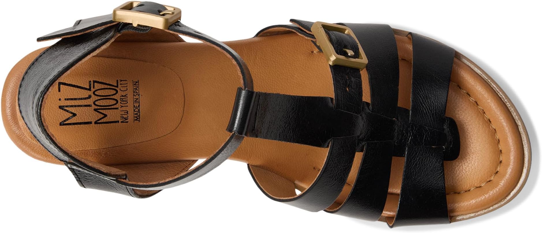 • Miz Mooz Rowen — классические сандалии в современном исполнении. Верх, подкладка и стелька выполнены из высококачественной кожи, что обеспечивает им мягкость и комфорт, а самое главное — они идеально адаптируются к форме стопы. Пряжка на щиколотке обеспечивает плотную посадку, а блочный каблук сзади обеспечивает необходимую высоту для уверенности. Вы можете носить эту стильную обувь как для бранча с друзьями, так и для прогулок по пляжу. Подошва из синтетической резины обеспечивает комфорт и сцепление.