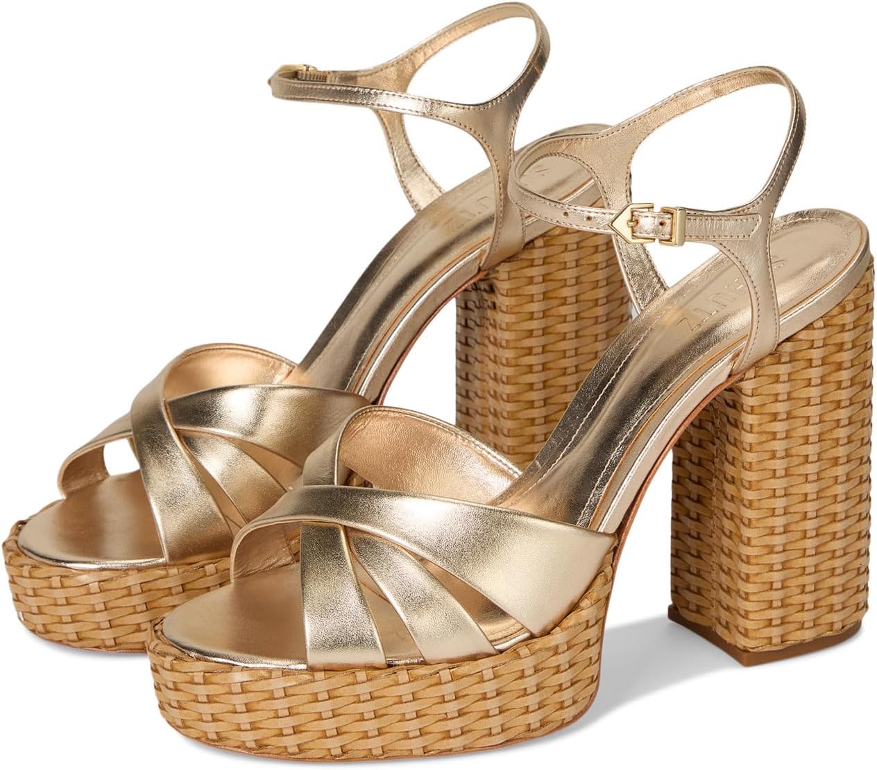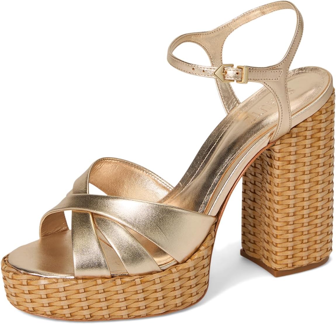 • Сандалии Schutz Keefa Straw с высокой платформой, обтянутой натуральной соломой. Эти босоножки на блочном каблуке с верхом из высококачественной кожи выделяются своей уникальной текстурой и очарованием.