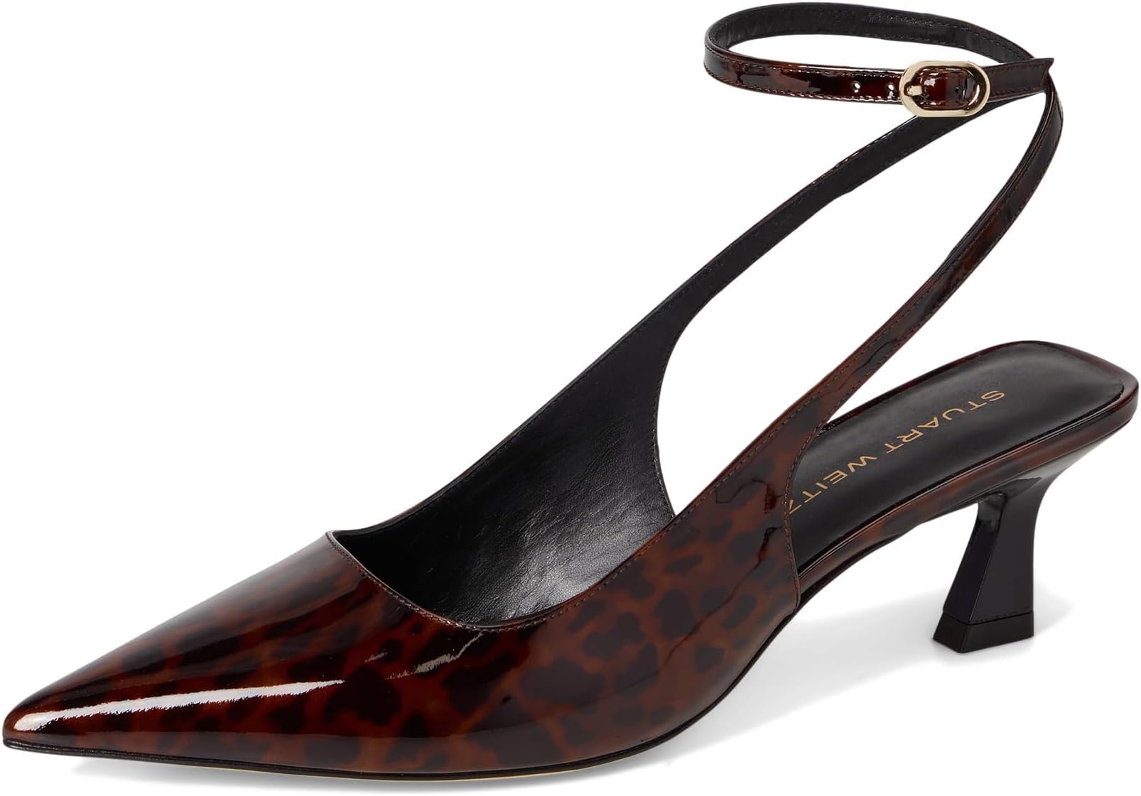 • Туфли Stuart Weitzman Vinnie 50 Strap Pump — это скульптурное изделие, сочетающее элегантность с архитектурной строгостью. Они отличаются гладким острым носком и характерным квадратным задником, а регулируемые ремешки с пряжками обеспечивают надежную и удобную посадку.