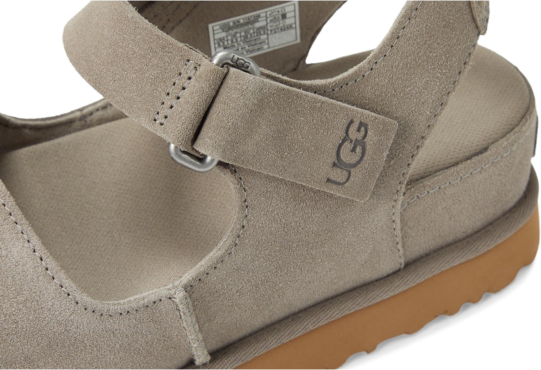 • Сандалии, которые заставят вас воскликнуть: Да ладно, можно просто пройтись! Goldenstar Hi — это более высокая версия культовых сандалий Goldenstar, которая выводит ту же непринужденную форму на новый уровень. Тщательно выбирайте наряды и направления, ведь эти сандалии на высокой платформе созданы для возвышенных моментов. Эта платформа одновременно роскошная и удобная, сочетает в себе дышащую стельку и мягкую анатомическую стельку. Изготовленные с мягким замшевым верхом и культовыми деталями UGG, вы получите ту же легкость носки Classic Boot, но стильно для солнца.