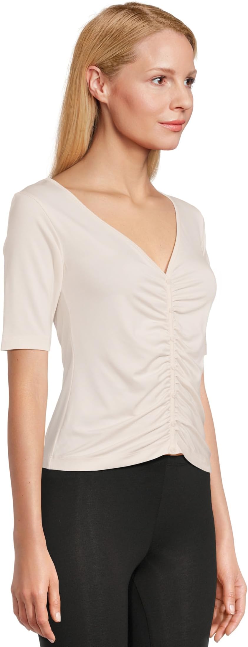 • Футболка Splendid Yasmina Ruched Tee прекрасно сочетает в себе классическую элегантность и современный комфорт. Верхняя часть свободная, надевается сверху, имеет короткие рукава с круглыми манжетами и сборку по центру переда, образующую V-образный вырез. Застёжка по центру переда выполнена из декоративных, нефункциональных пуговиц.