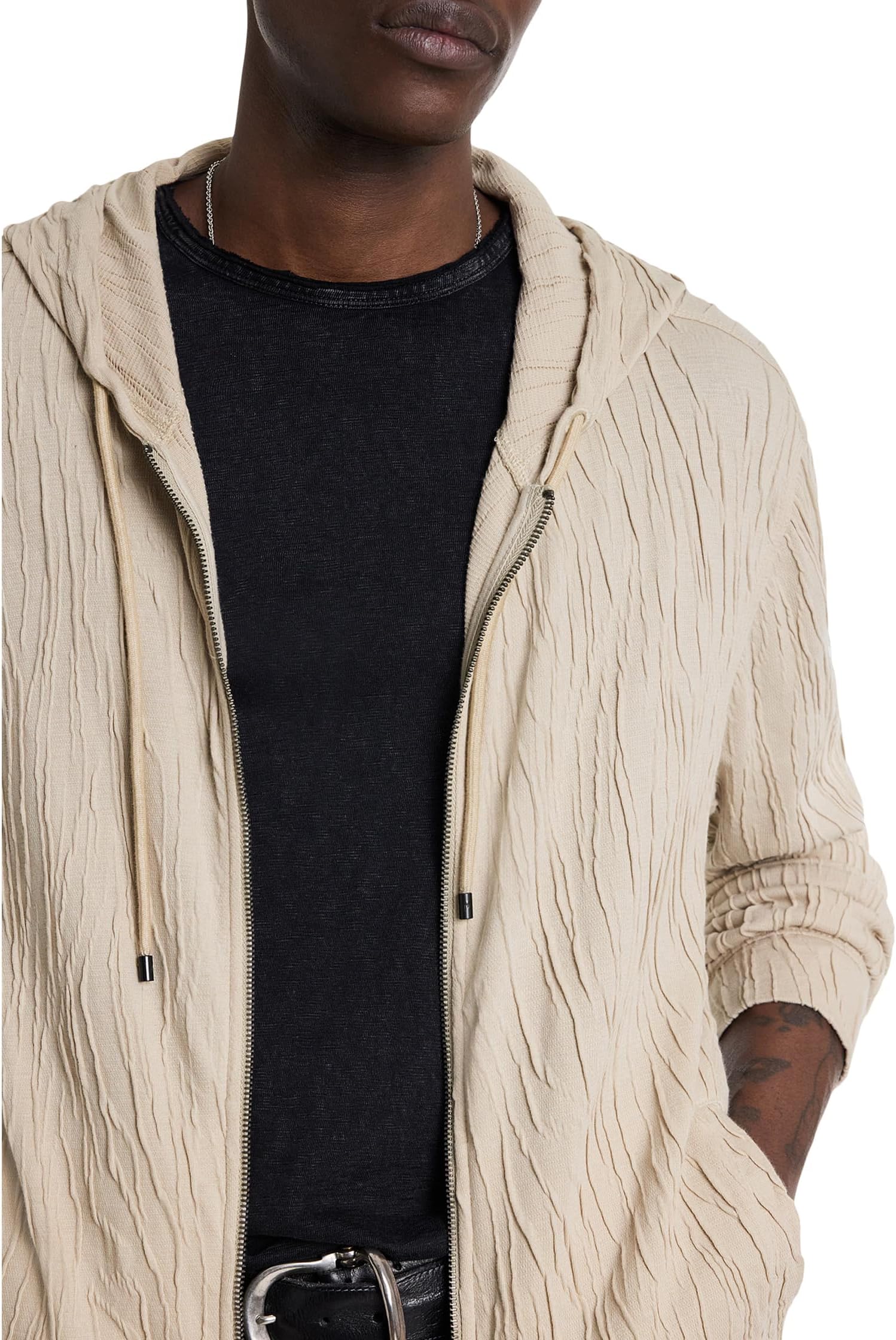 Мужское худи Ihsan Zip Hoodie от John Varvatos, выполненное в цвете Fossil Grey. Идеальный выбор для создания расслабленного и стильного образа. Прекрасно сочетается с джинсами и спортивными брюками. Подходит для повседневной носки и активного отдыха. Качественные материалы обеспечивают комфорт и долговечность.