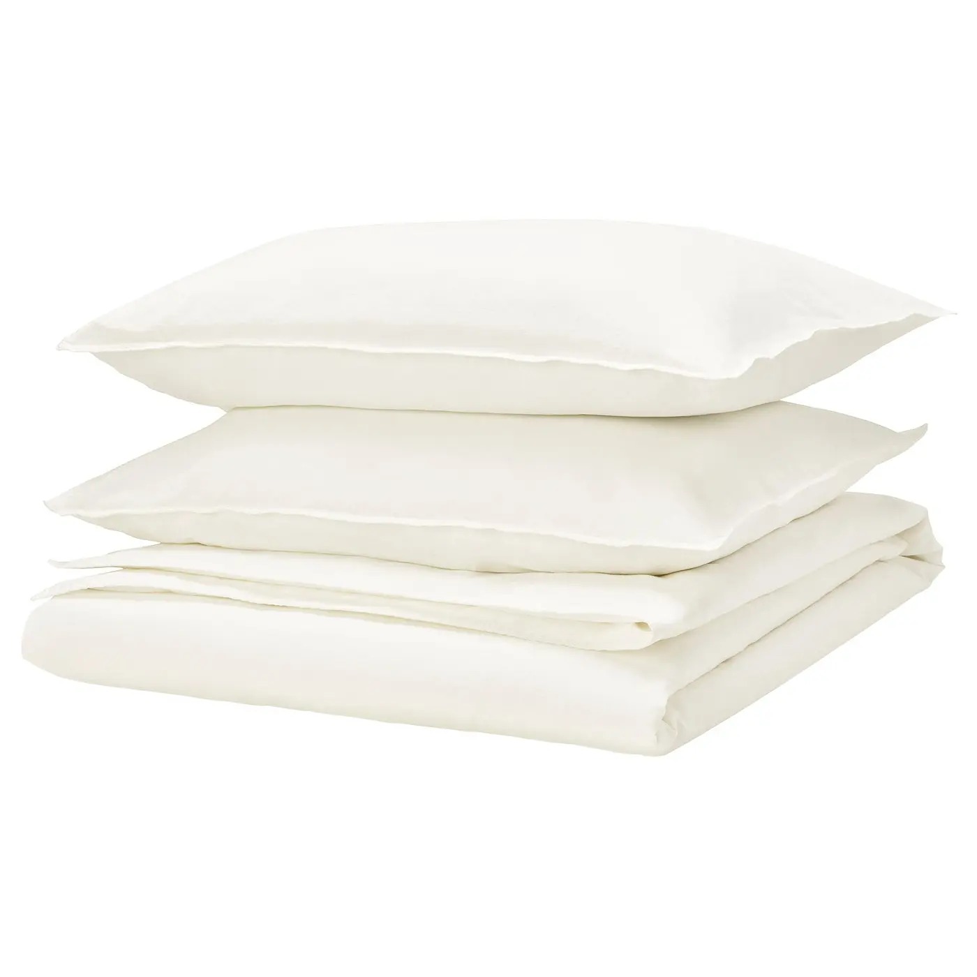 Комплект постельного белья Ikea Rundhagtorn изготовлен из смеси прочного льна и удобного хлопка, который дышит и впитывает влагу, а ткань становится мягче с каждой стиркой.