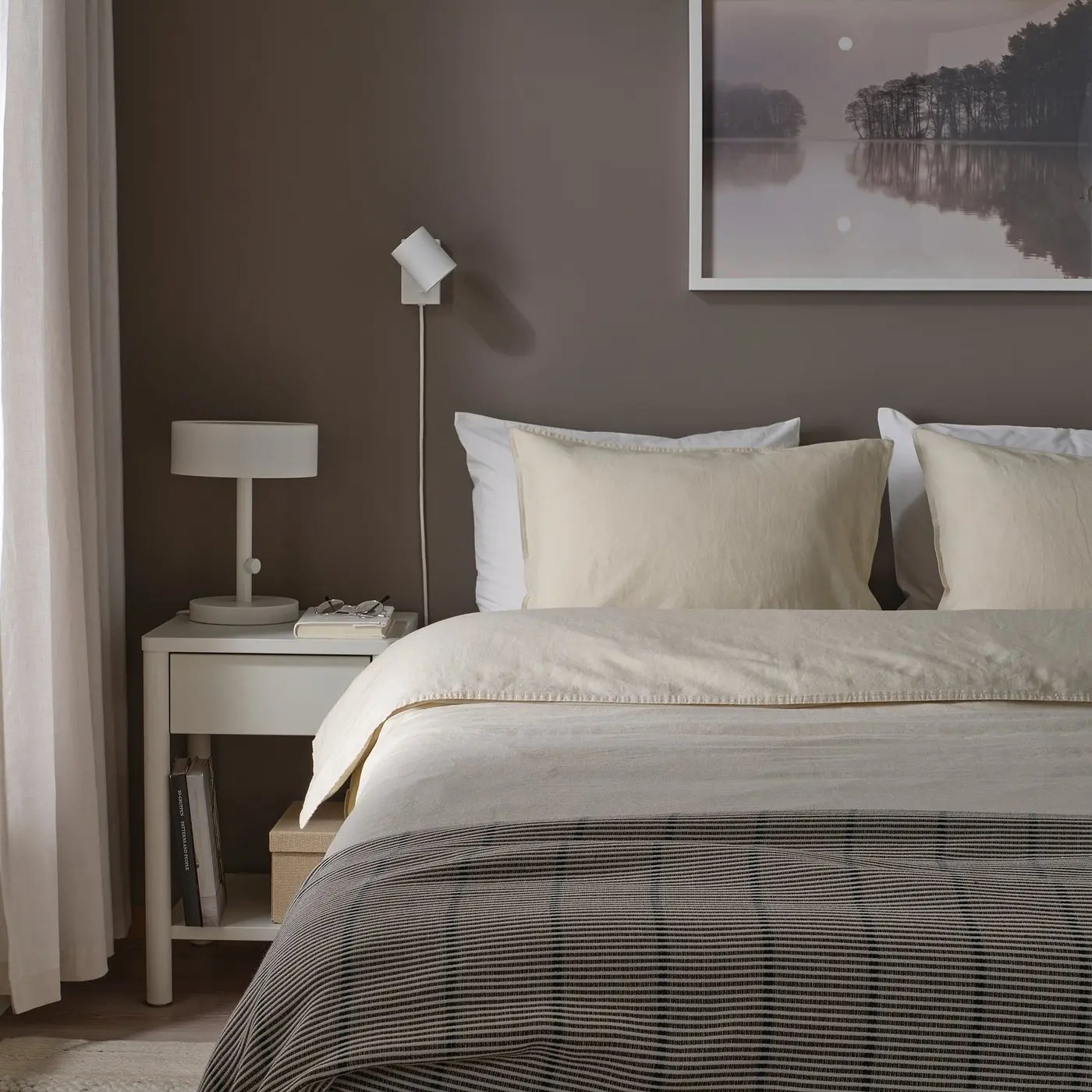 Комплект постельного белья Ikea Rundhagtorn изготовлен из смеси прочного льна и удобного хлопка, который дышит и впитывает влагу, а ткань становится мягче с каждой стиркой.