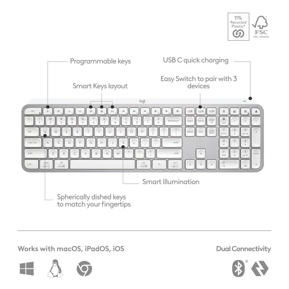 Беспроводная клавиатура Logitech MX Keys S (бледно-серая)