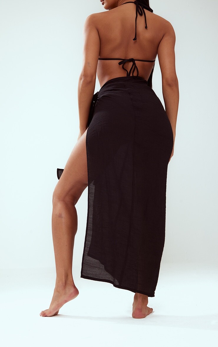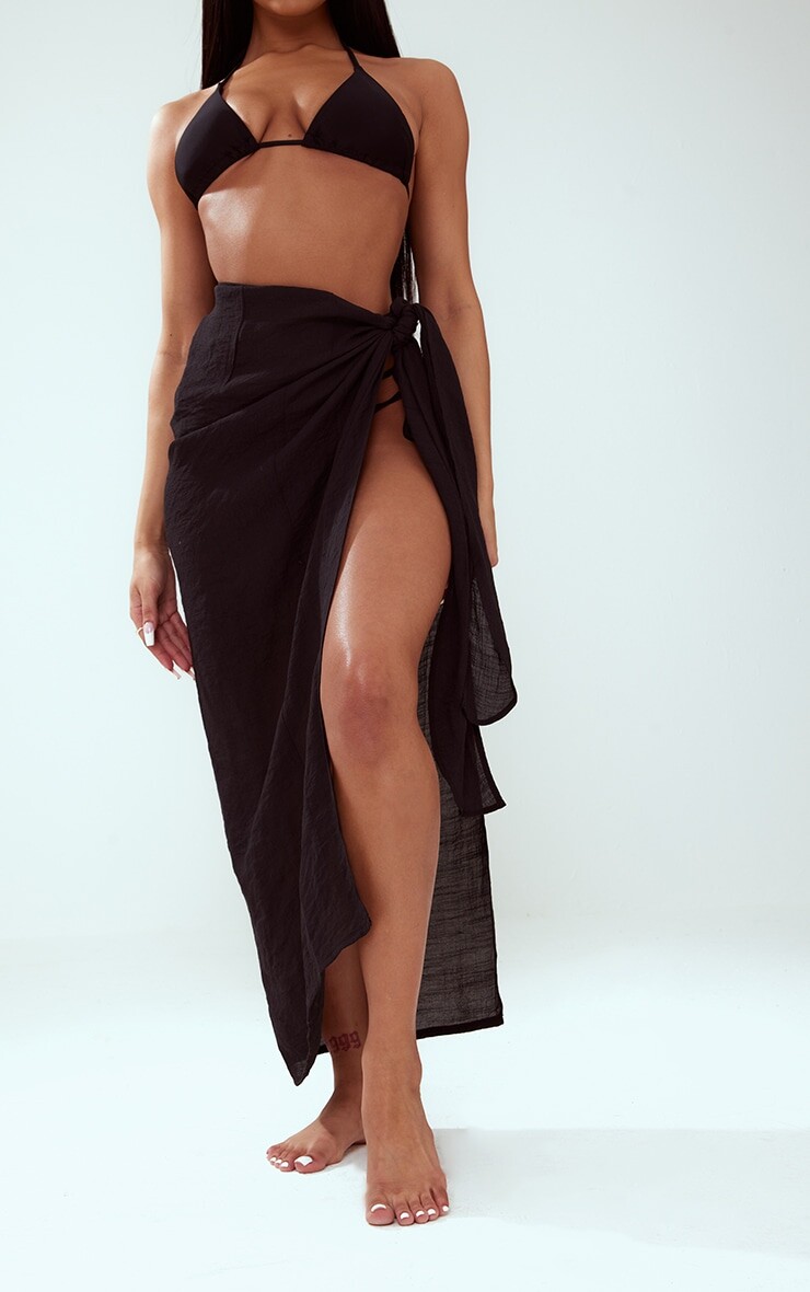 Поднимите свой образ у бассейна на совершенно новый уровень с этим пляжным саронгом черного льняного цвета. Это идеальная вещь, которая подчеркнет все стильные моменты этого сезона. Этот саронг выполнен из черного льняного материала с завязками по бокам и имеет приятную посадку. Как можно не увлечься? Просто сочетайте этот женский пляжный саронг с вашим любимым бикини и простыми аксессуарами, и все головы будут привлекать внимание по всем правильным причинам.