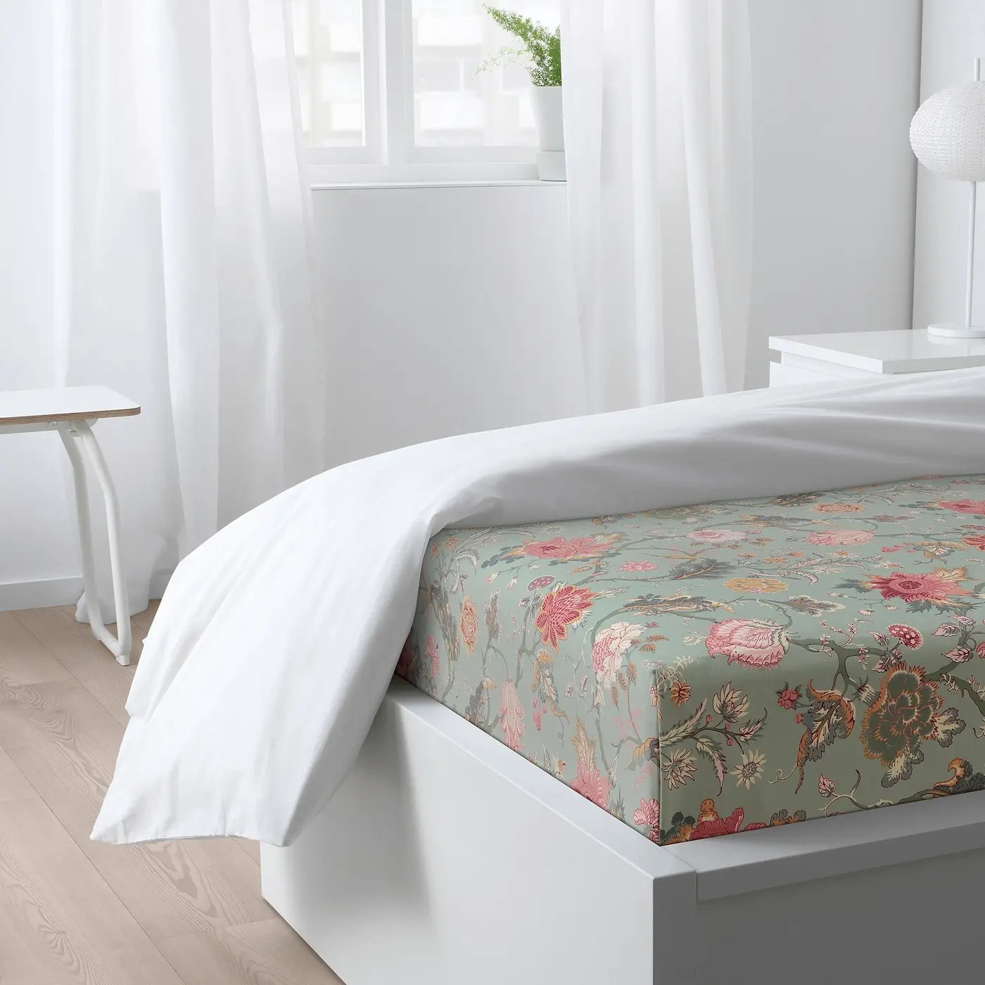 Простыня Ikea Nässelklocka - как будто спишь на прохладном летнем лугу. Эта светло-серо-зелёная ткань с декоративным цветочным узором соткана из мягкой смеси хлопка и вискозы, приятной на ощупь. Придайте своей кровати уютный вид.