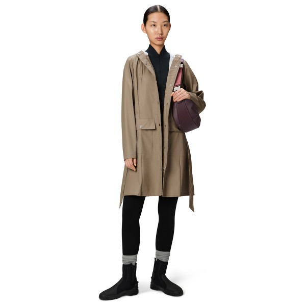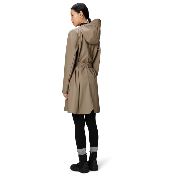 Женская длинная куртка Curve W3 от Rains сочетает в себе классический стиль тренча и современную защиту от непогоды. Приталенный крой подчеркивает фигуру, а легкий водонепроницаемый полиуретановый материал со сварными швами надежно защищает от дождя и ветра. Продуманные детали обеспечивают комфорт и функциональность, включая капюшон с интегрированным козырьком, пропитанную молнию с застежкой на кнопках и регулируемые манжеты для оптимальной защиты. Талия подчеркивает женственный силуэт, а вентиляционные отверстия под мышками обеспечивают вентиляцию. Два практичных передних кармана на кнопках дополняют образ. Прогуливаетесь ли вы по городу или гуляете за городом, этот стильный плащ предлагает элегантность и защиту от непогоды в одном.