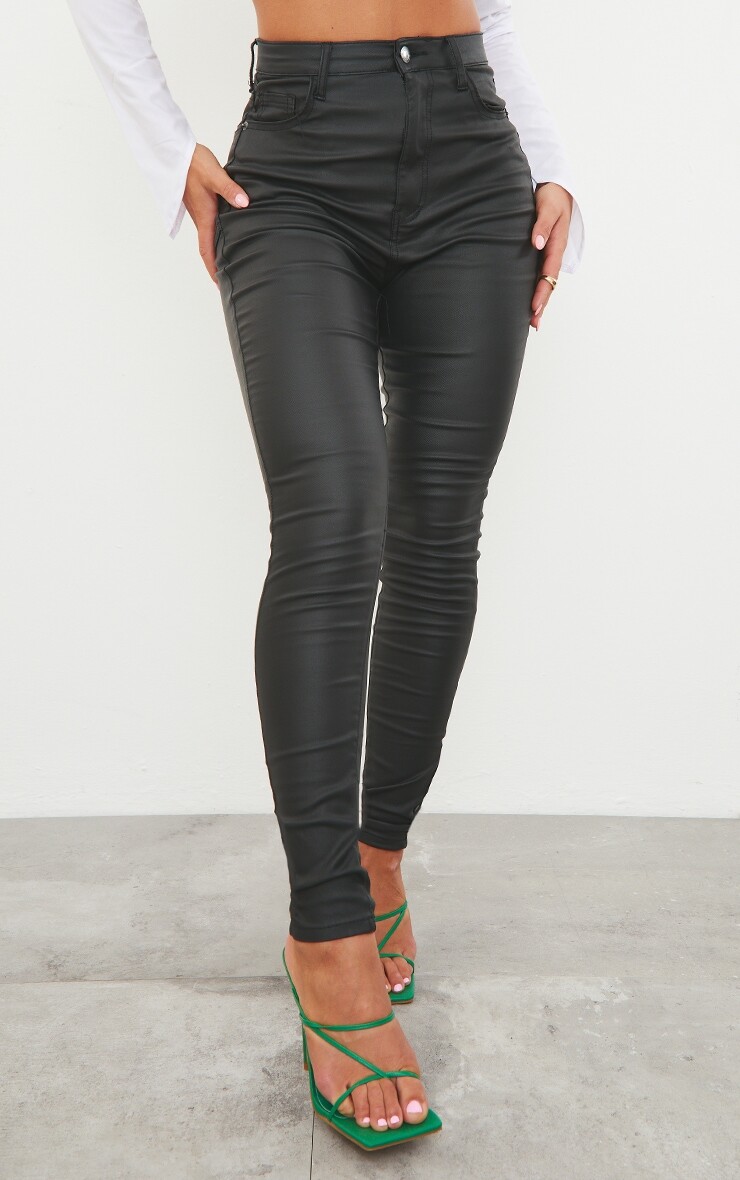 PrettyLittleThing Черные джинсы скинни с покрытием «песочные часы»