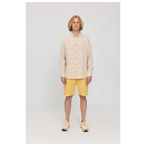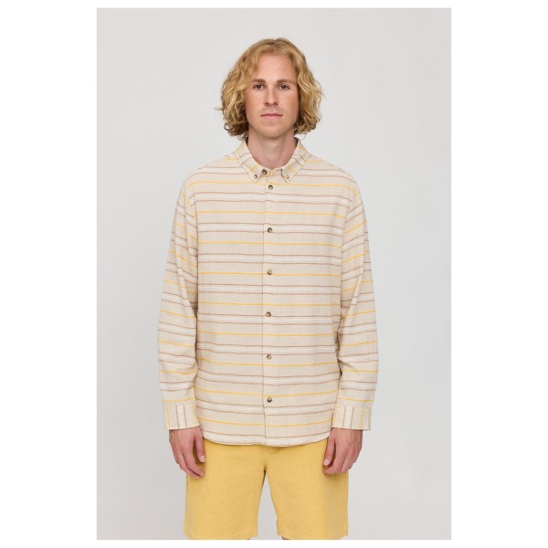 Рубашка из льняной смеси в полоску от Mazine сочетает в себе повседневный стиль и современное сочетание натуральных волокон. Изготовленная из прочной смеси льна, органического хлопка и вискозы, она обеспечивает прочность и максимальный комфорт. Классический крой обеспечивает удобную посадку и классический силуэт. Рубашка из льняной смеси в полоску впечатляет тонкими полосками, классическим воротником на пуговицах и изящной вышивкой логотипа.