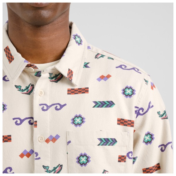 Рубашка Rute Flannel Trout And Waves от DEDICATED подойдет для самых разных видов отдыха. Она дышащая и, благодаря использованию органического хлопка, экологичная. Рубашка обеспечит вам максимальный комфорт. Благодаря своему игривому рисунку она притягивает взгляды. Нагрудный карман завершает образ. Рубашку можно носить с джинсами или повседневными брюками.
