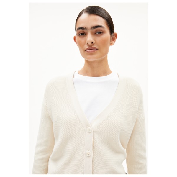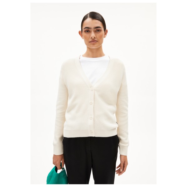 Вечный, универсальный и стильный - вот что такое женский кардиган Menaal Links от ARMEDANGELS. Этот кардиган станет вашим спутником в повседневной жизни и на отдыхе. Прямой и удобный крой делает его очень удобным в носке и оставляет место для дополнительной блузки или рубашки. Монохромный дизайн и классический крой позволяют сочетать кардиган с различными стилями одежды, от повседневного до элегантного. Это расширяет вашу личную коллекцию, добавляя в нее по-настоящему универсальную вещь.