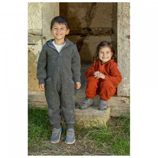 Комбинезон изготовлен из валяной органической шерсти, которая защищает от сырости и холода. Шерсть также обладает множеством полезных свойств. Она регулирует температуру, дышащая, не впитывает запахи и согревает даже во влажном состоянии. Большой капюшон надежно защищает голову и шею. Руки можно согреть в двух передних карманах. Длинная молния спереди позволяет быстро надевать и снимать комбинезон. Для большей свободы движений и комфорта комбинезон оснащен ластовицей в области паха. Эластичные ребристые манжеты делают его еще более удобным и обеспечивают идеальную посадку.