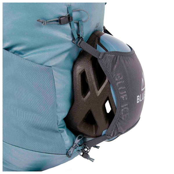 Отделения и крепления: 2 боковые сетки отделения, петли для крепления шлема, крепление для веревки, внутренний карман на молнии, карабин для ключей, держатель для ледоруба/палки