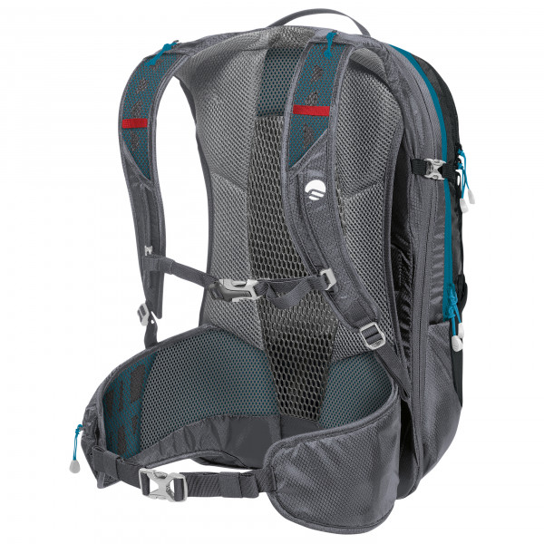 Этот велорюкзак имеет основное отделение объемом до 22 литров, которое можно увеличить на три литра. Он также оснащен внутренними задними карманами, карманом с карабином для ключей, сетчатыми боковыми карманами, дополнительными передними карманами, карманами для поясного ремня, креплением для заднего фонаря, слотами для крепления шлема и держателем для велосипедной стойки. Плечевые лямки и набедренные накладки с мягкой подкладкой покрыты дышащей сеткой. В сочетании со спинкой Dry Net System и гибкой стальной рамой, этот рюкзак обеспечивает вентиляцию без пота и оптимальное распределение нагрузки. Свисток на нагрудном ремне, светоотражающие элементы и чехол для рюкзака завершают образ Zephyr 22+3.