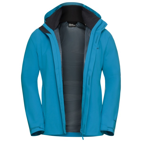 Капюшон удобно прилегает к голове. Благодаря шнурку его можно индивидуально отрегулировать, чтобы голова оставалась в тепле и сухости. Нагрудный карман на молнии предлагает место для безопасного хранения телефона, денег и ключей. Вы можете согреть руки или убрать дополнительные мелкие предметы в два боковых кармана. Регулируемые манжеты обеспечивают индивидуальный комфорт. Принт логотипа на груди по-настоящему привлекает внимание и привлекает всеобщее внимание. Куртка-дождевик для прогулок на свежем воздухе в любую погоду - куртка Trailtime 2L от Jack Wolfskin.