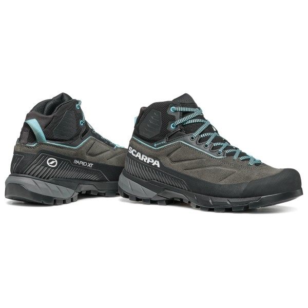Женские кроссовки Rapid XT Mid GTX от Scarpa - это прочные кроссовки для подъема! Водонепроницаемая мембрана GORE-TEX и круговая защита от осыпей обеспечивают комплексную защиту. Благодаря усиленному заднику они отлично справляются с спусками по осыпям. Усиленные носок и пятка обеспечивают дополнительную защиту. Стелька Ortholite обеспечивает комфорт при ходьбе. Обувь идеально подходит для технических подходов и самых легких подъемов!