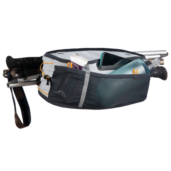 Будь то длительные тренировки или соревнования - с поясом для гидратации все необходимое будет под рукой, не ограничивая свободу движений. Благодаря инновационной системе регулировки он надежно фиксируется на бедрах, а пять карманов позволяют разместить смартфон, гели, ключи и бутылку объемом 500 мл. Беговой пояс весит всего 93 г, практически не ощущается и уменьшает раздражающее шатание. Пенопластовая подкладка на спине обеспечивает дополнительный комфорт, даже при ношении палок.