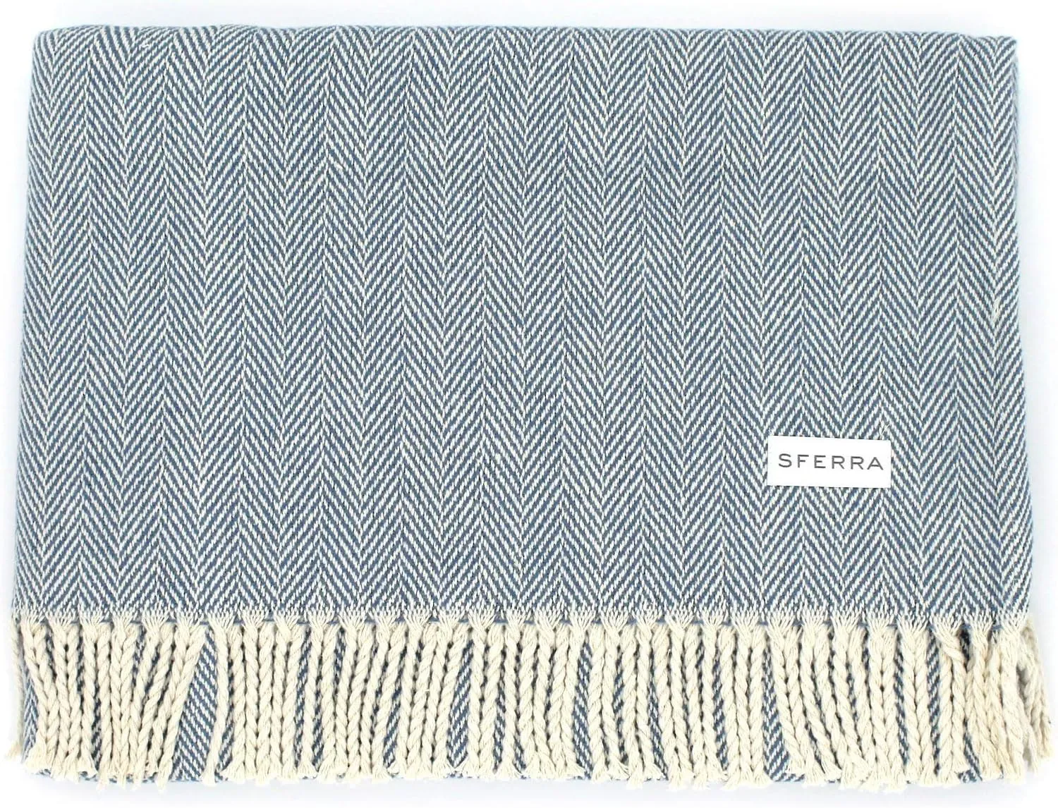 Сделано в Португалии из 100% хлопка Красивый классический узор елочка с натуральным краем Размер пледа: 51" x 71" Отличный подарок для любимых - на день рождения, выпускной, возврат в школу, колледж, Рождество, День матери, День святого Валентина, корпоративные подарки