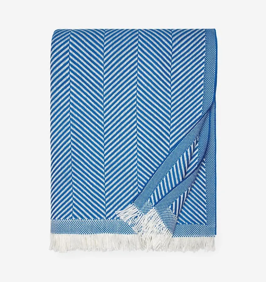 Яркие нити в остроумном узоре "елочка" украшают Косту, легкое хлопковое покрывало, напоминающее о солнце поцелованных утрах Нанткета.