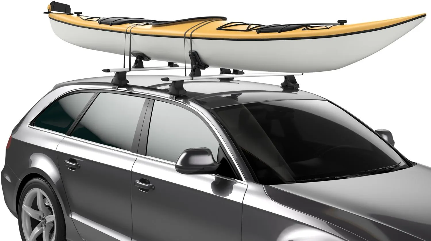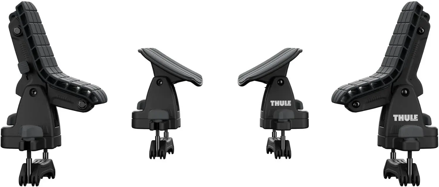 Гибкий перевозчик для каяков с обитыми войлоком подушками, каячная стойка Thule DockGlide проста в загрузке и выгрузке и подходит для каяков шириной до 36 дюймов (90 см) и весом до 75 фунтов (35 кг).