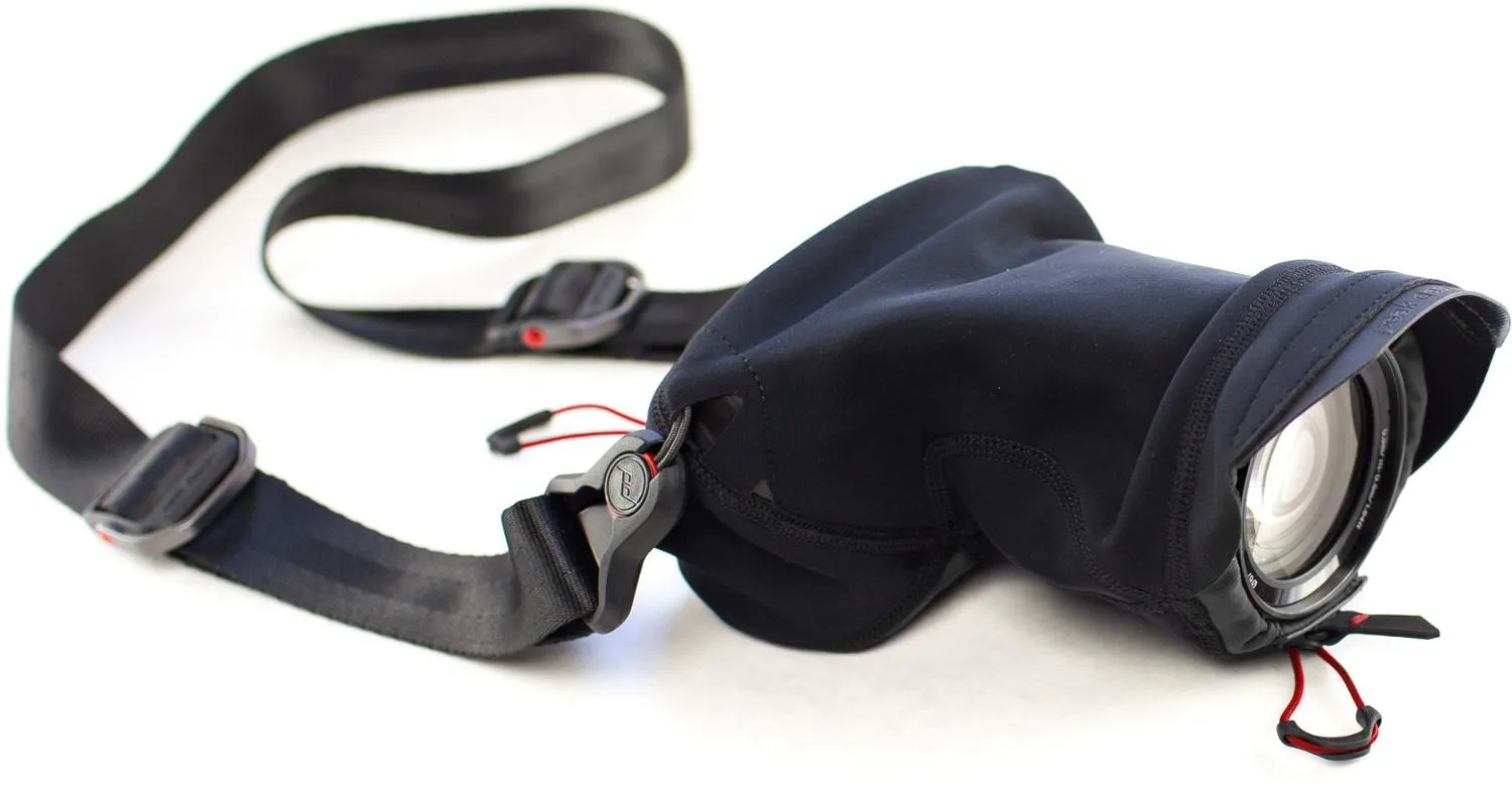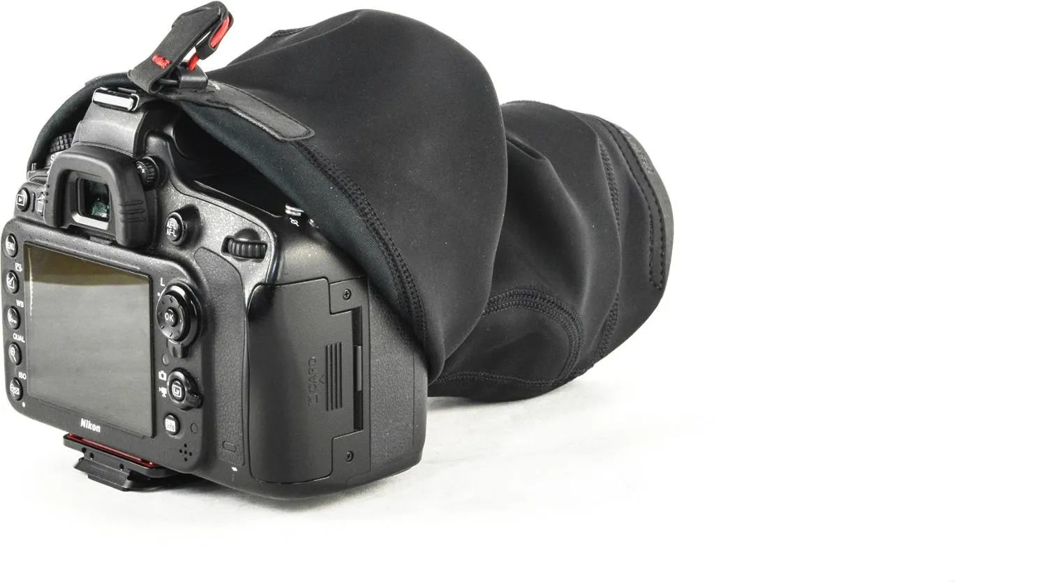 Форма для камеры использует растягивающуюся ткань с водонепроницаемой мембраной, чтобы защитить вашу камеру, не добавляя объема и не мешая вашему рабочему процессу