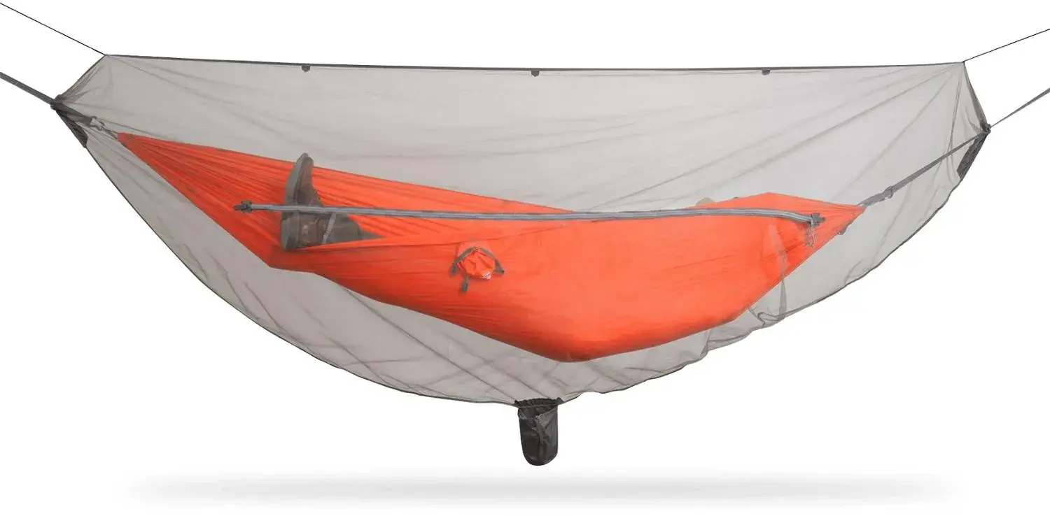 Защитите себя от насекомых, переносчиков заболеваний, пока вы находитесь на деревьях с сеткой от насекомых Kammok Dragonfly. Она удерживает вредных насекомых, но пропускает прохладный ветерок и красоту ночного неба.