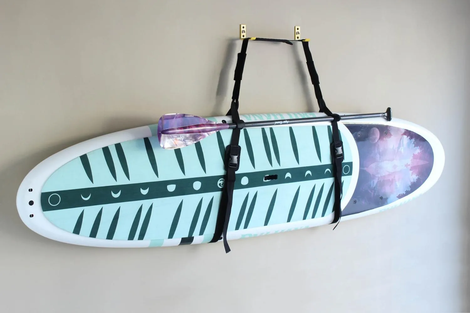 Легкий в установке ремень размером 2 дюйма имеет мягкую подложку за пряжками, чтобы защитить ваш каяк или SUP от царапин. Ремень выдерживает до 100 фунтов и может быть настроен для крепления к каякам и паддлбордам шириной до 36 дюймов и более. В комплект входит: ремень Stow & Go, 2 настенные крепления, крепеж для стен и нейлоновая сумка для хранения.
