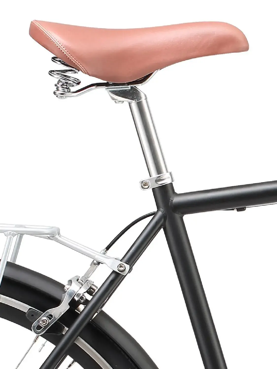 Внешняя кассета с 8 скоростями предлагает подходящие передачи для вашего стиля катания. Изготовлена из суперпрочной рамы и вилки из стальной высокопрочной трубы с вертикальной геометрией, которая идеально подходит для расслабленного городского катания. Передние и задние тормоза с алюминиевыми колодками и карданный вал из трех частей. Защитник цепи предотвращает попадание масла на вашу одежду. Оловянные обода двойной стенки глубиной 30 мм с нержавеющими спицами. Стильные, но практичные особенности включают в себя соответствующие крылья, серебристый звуковой сигнал, подставку, отражатели, заднюю корзину, кожаные рукоятки и кожаное сиденье с пружинами. ПРИМЕЧАНИЕ: Спецификации и изображения могут меняться в зависимости от доступности компонентов.