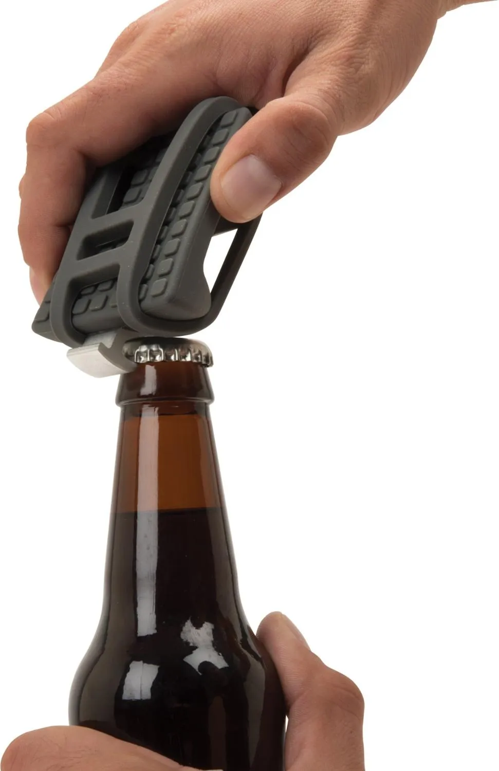 Алюминиевая базовая деталь служит удобным открывалкой для бутылок.