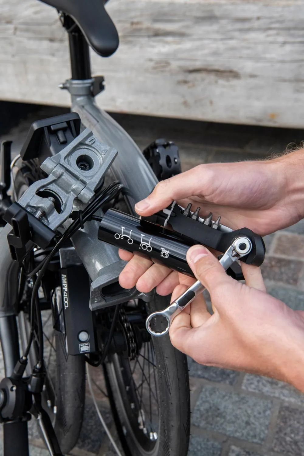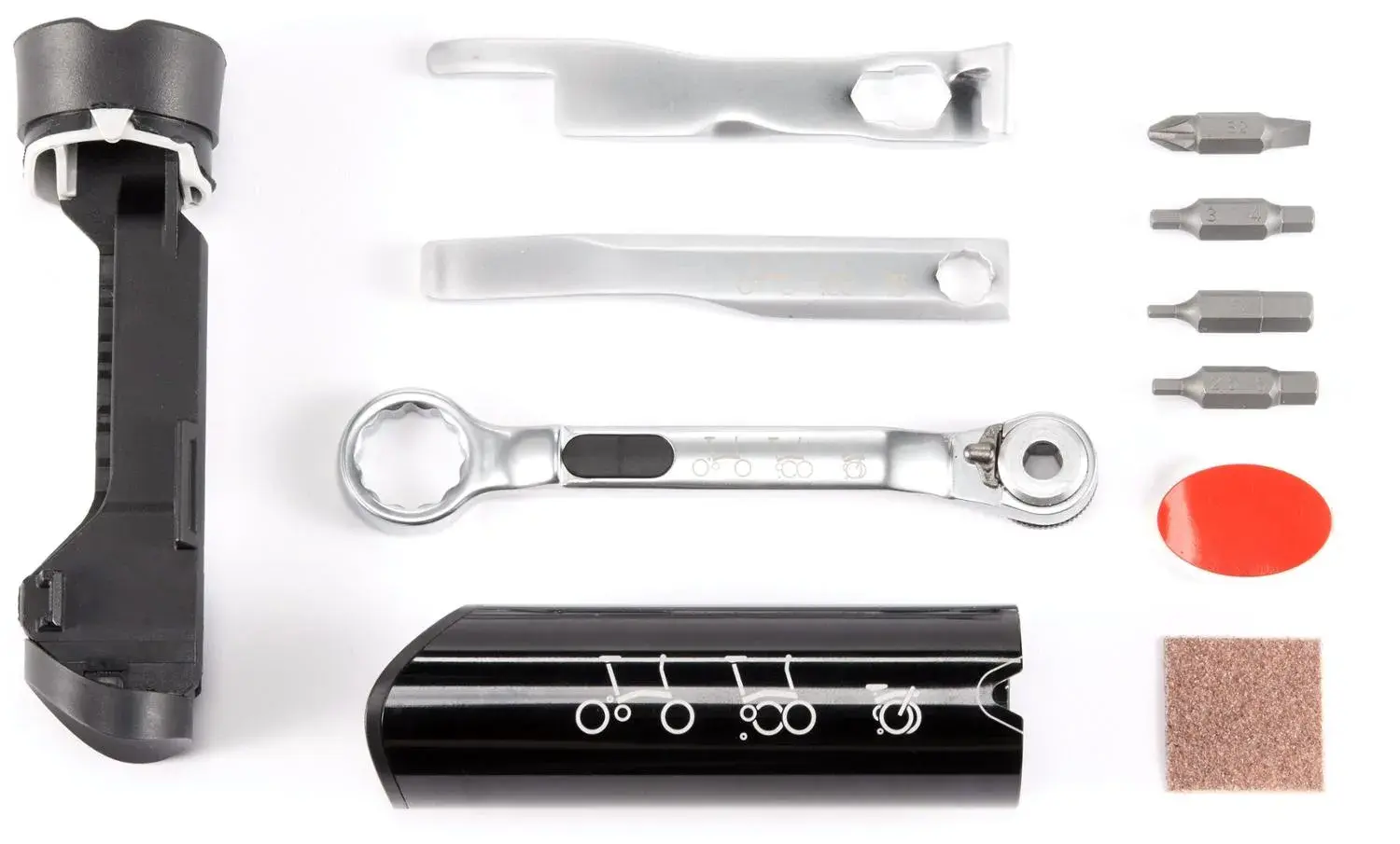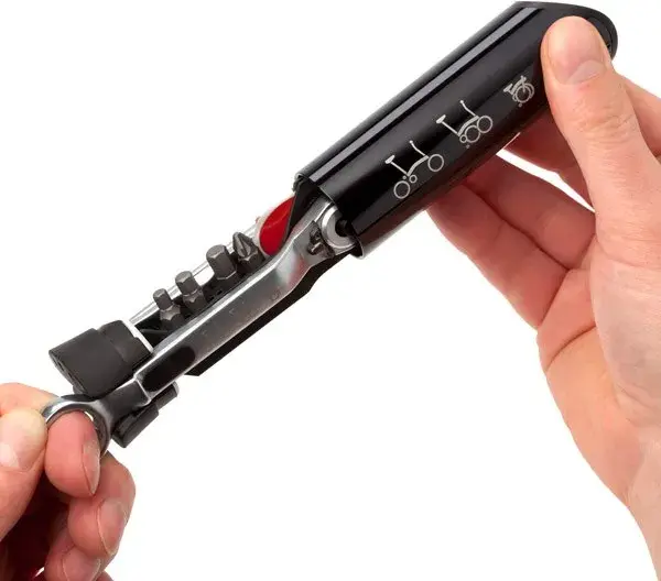 Предоставляя вам все основные инструменты, необходимые для продолжения пути, комплект инструментов Brompton помещается внутри основной рамы вашего складного велосипеда Brompton.