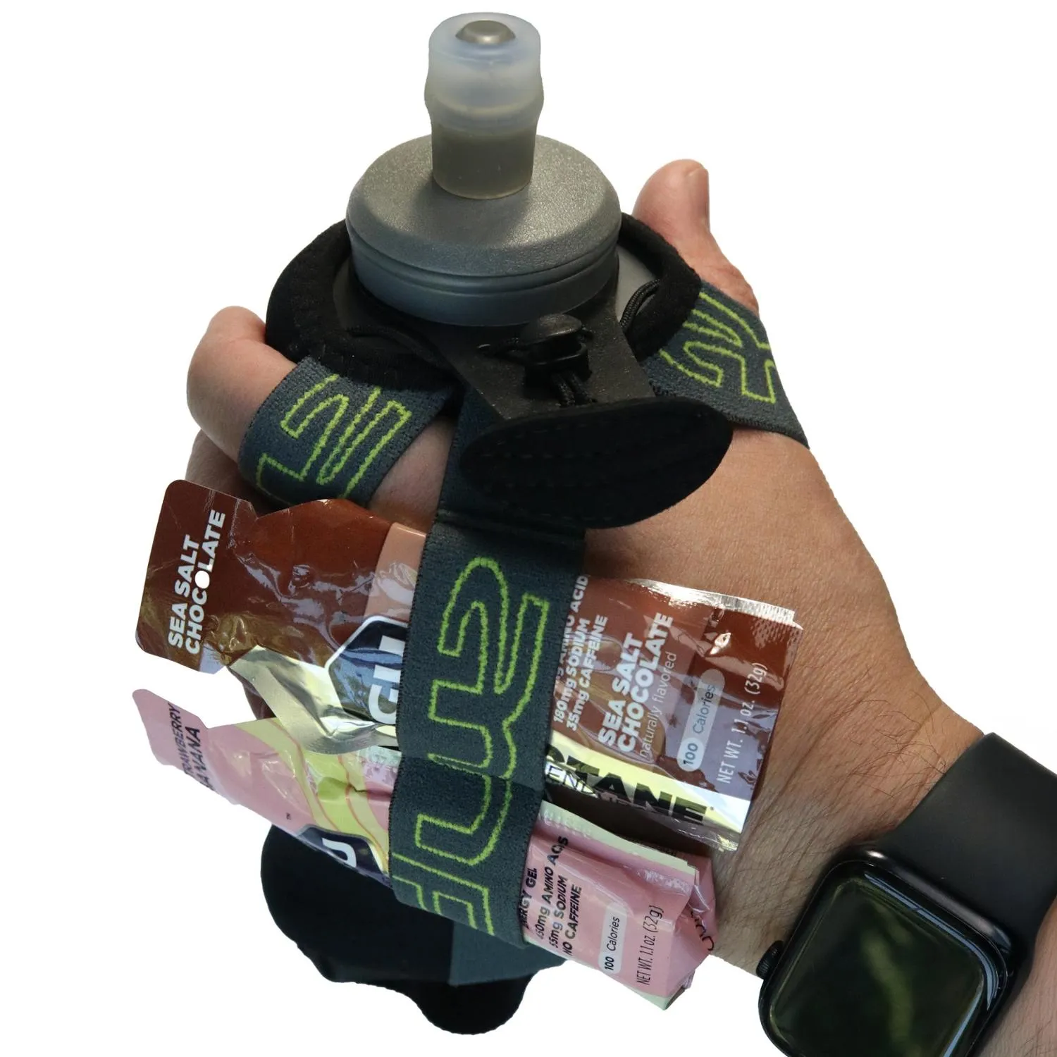 Двойные петли на ручном ремне обеспечивают удобный доступ к энергетическим гелям.