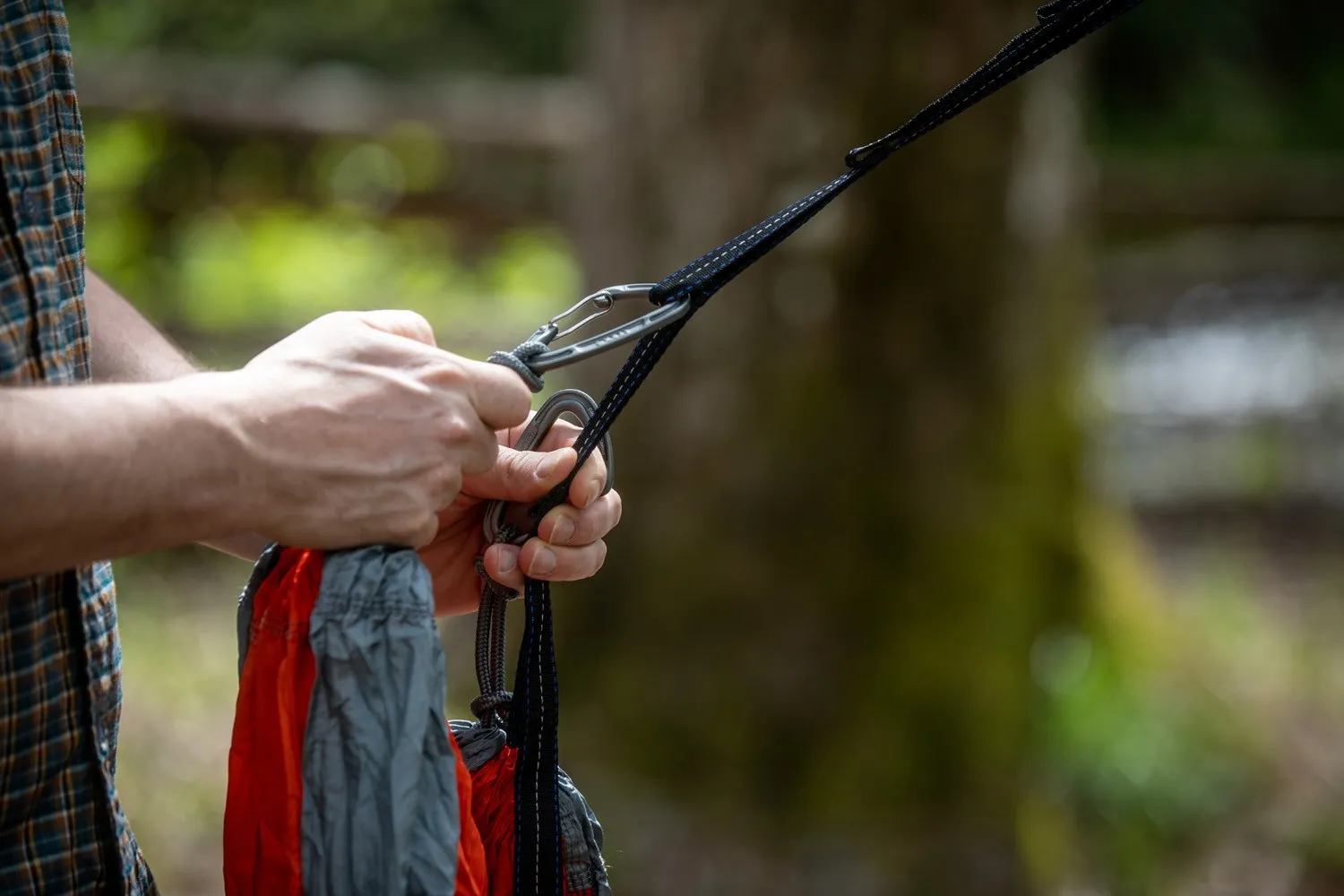 Каждый ремень в системе подвешивания гамака ENO Atlas может выдерживать 200 фунтов, что дает общую грузоподъемность в 400 фунтов