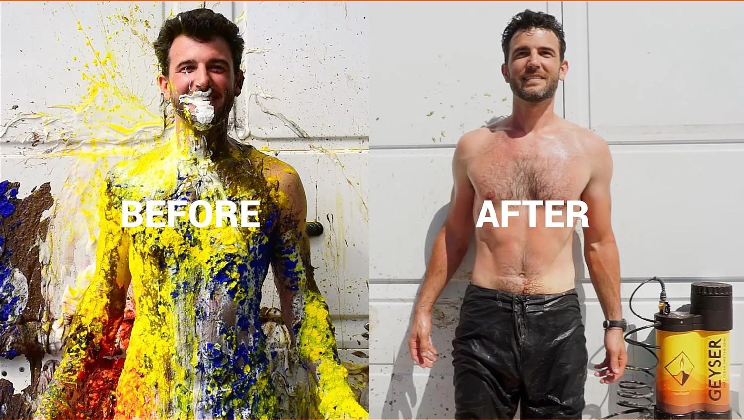 В Basecamp всегда заканчивается вода? Портативная душевая и очистительная система Geyser Systems с встроенным нагревом позволяет вам мыть снаряжение или себя, используя менее 1 галлона воды.