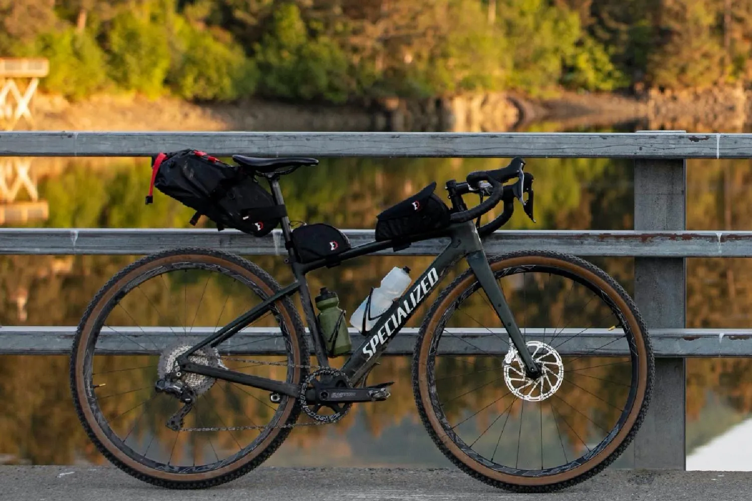 Примечание: Контакт сумки с шиной может вызвать аварию; Revelate указывает минимальный зазор в 8.5 дюйма от рельсов седла и 6.5 дюйма минимально открытой седловой трубы.