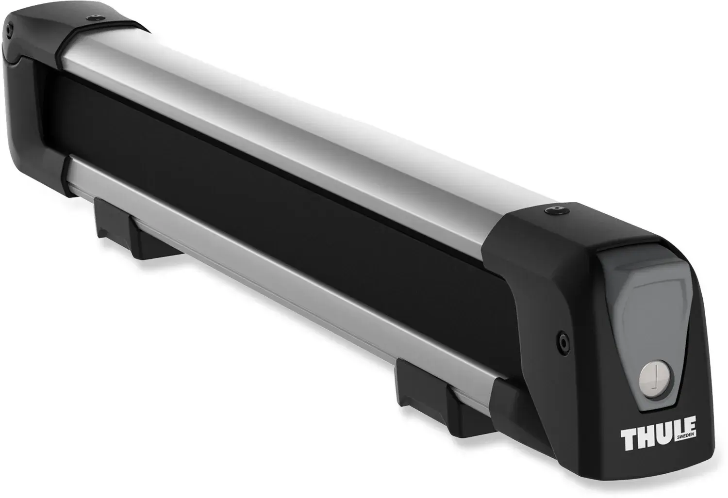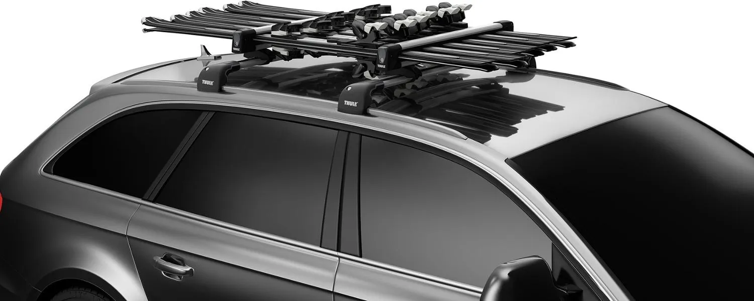 Большой сноубординговый и лыжный крепеж Thule SnowPack вмещает до 6 пар лыж или до 4 сноубордов надежно, с мягкими резиновыми руками, которые захватывают без царапания поверхностей.