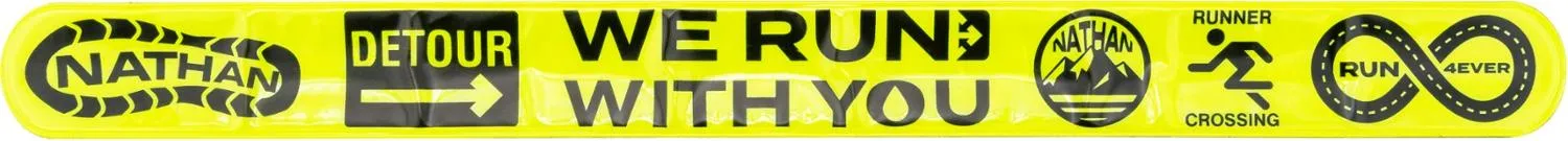 Никогда не выходящие из моды, браслеты Nathan Reflex Slap Bands веселые, ультра светоотражающие и легко прикрепляются к вашему запястью, лодыжке, ремню рюкзака или раме велосипеда для увеличения видимости.