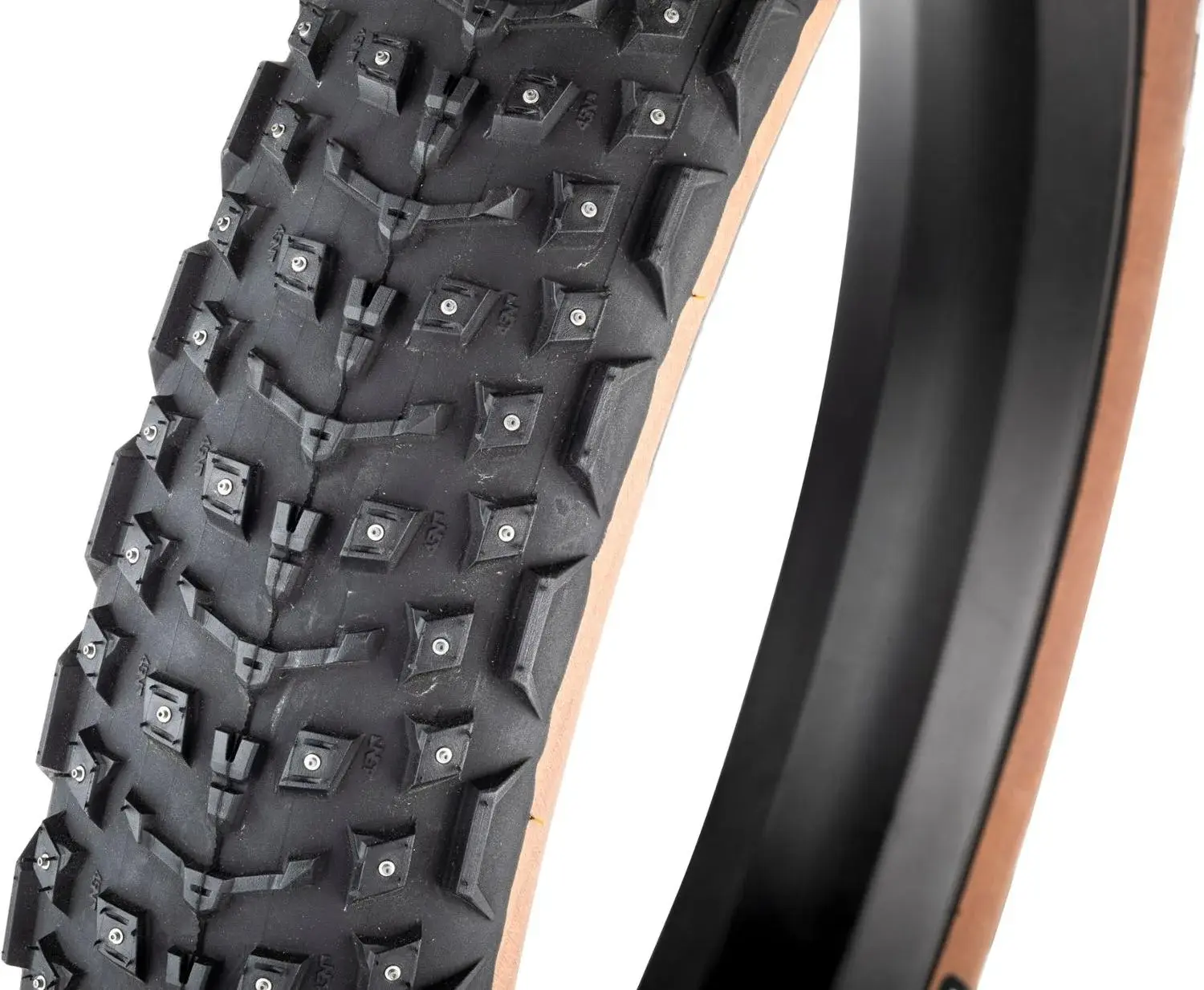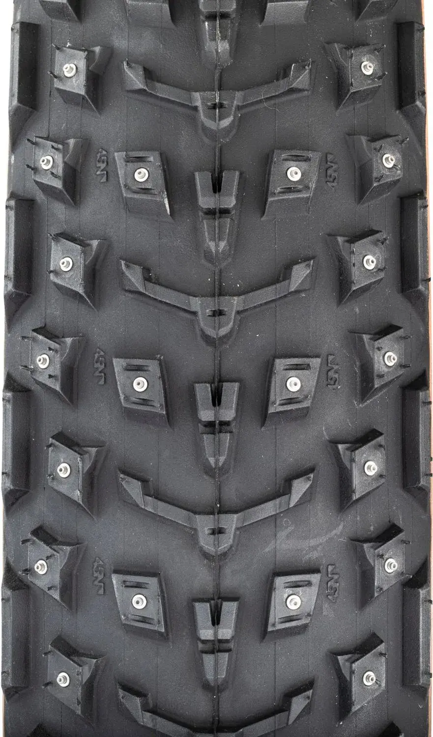 Разработанная для уверенной и контролируемой езды по обледенелым однопутным тропам, шина 45NRTH Dillinger 5 с шипами имеет плотно расположенный центральный протектор, высокие боковые выступы и 258 тщательно расположенных шипов.