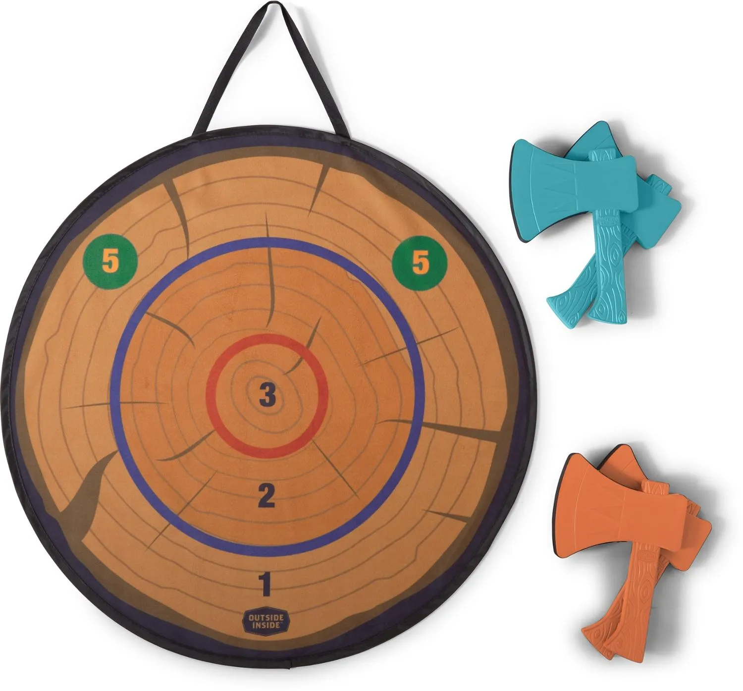 Освободите своего внутреннего лесоруба с набором для метания топоров Outside Inside, легкой и компактной игрой с забавными поролоновыми топорами и складной мишенью.