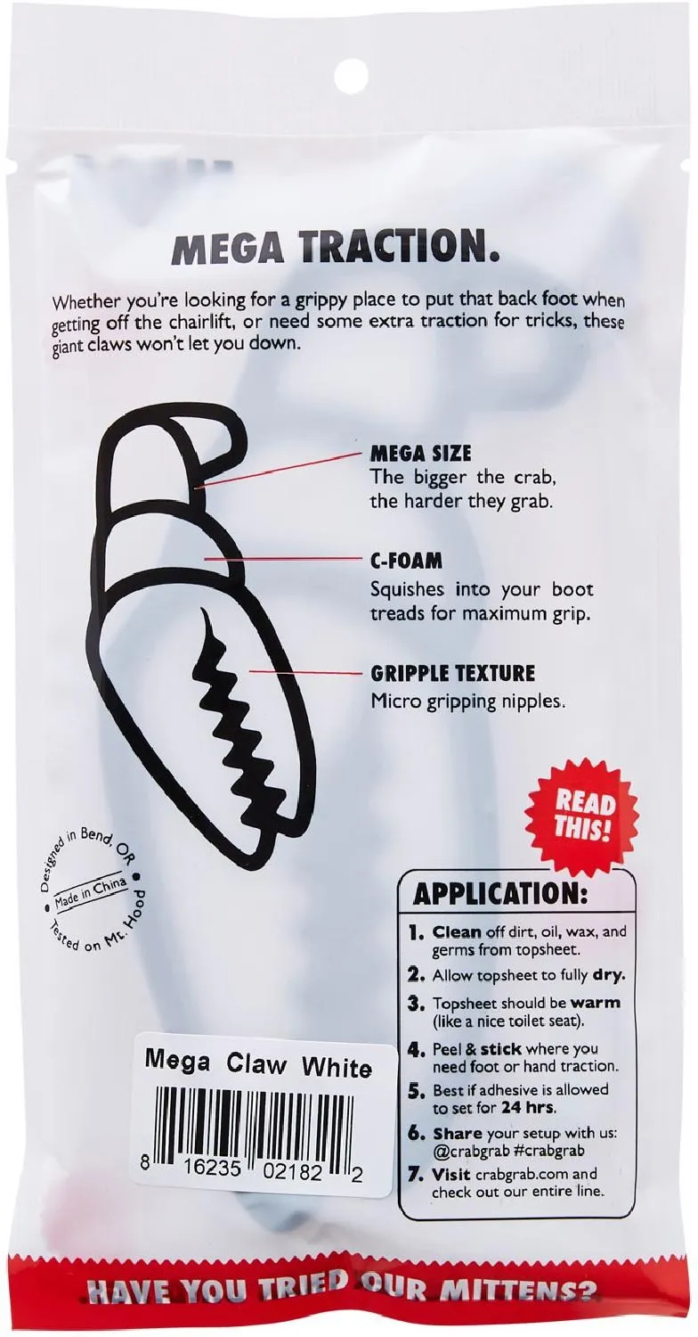 Будь то то, что вам нужно надежное место, чтобы поставить заднюю ногу при выходе из подъемника, или вам нужен дополнительный захват для трюков, Mega Claws от Crab Grab не подведут вас.