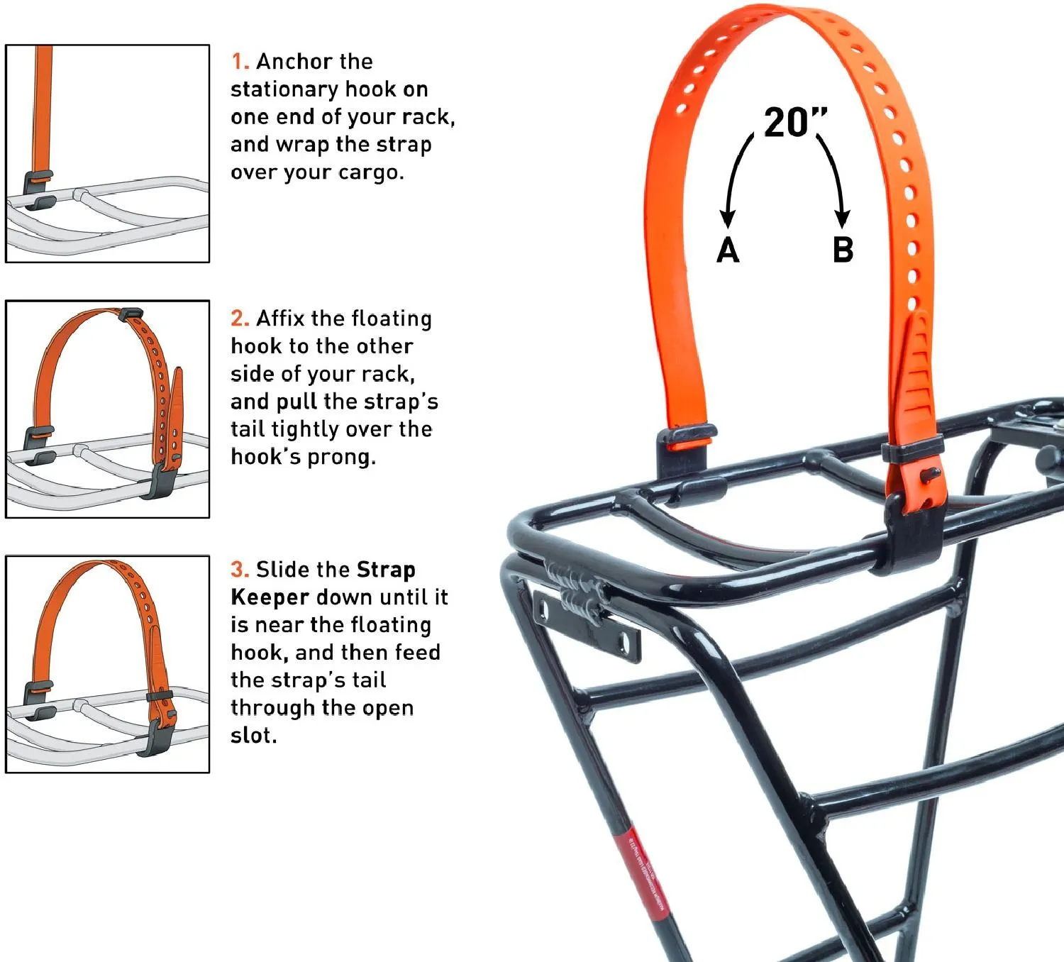 Перед тем как отправиться в велопутешествие, убедитесь, что ваши крепления, корзины и другое снаряжение надежно закреплены с помощью прочных эластичных ремней Voile Straps 20 дюймов.