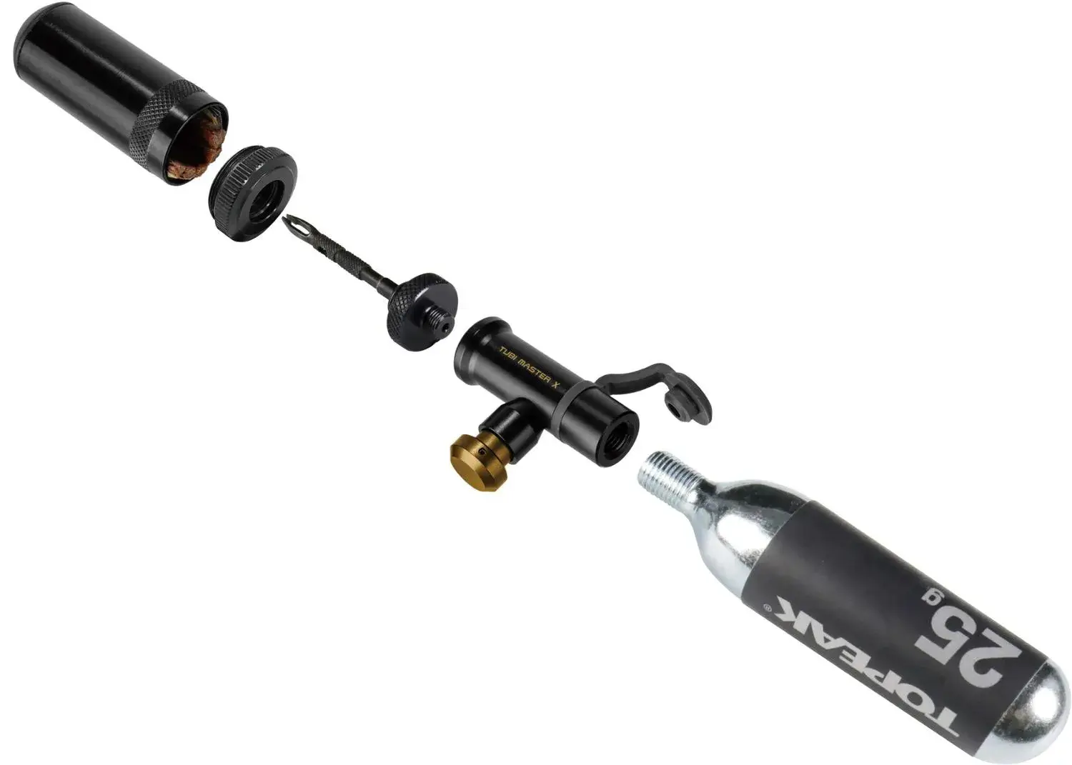 Для ремонта и подкачки шин используйте микроразмерный инструмент Topeak Tubi Master X. Его инновационная головка CO2 инжектора 2-в-1 ремонтирует и накачивает бескамерные шины прямо на месте прокола за один шаг.