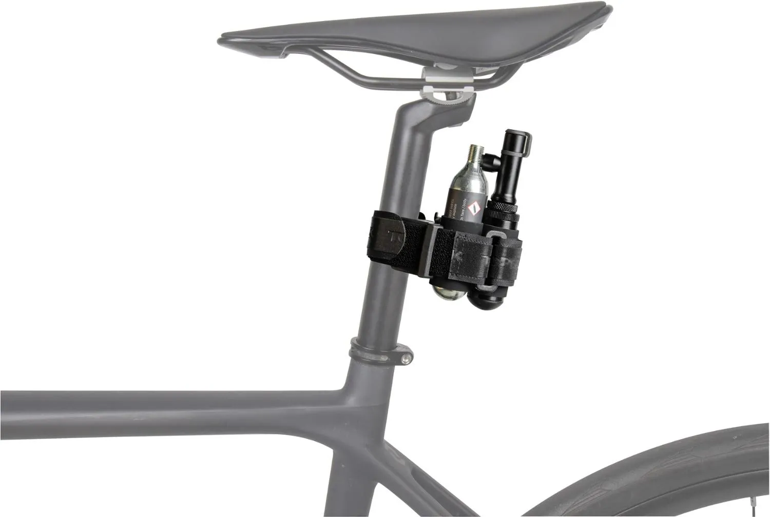 Модуль крепления крепится на любой трубке, такой как подседельный штатив или рама велосипеда, и может вмещать до 2 резьбовых картриджей CO2 по 25 г (не включено)