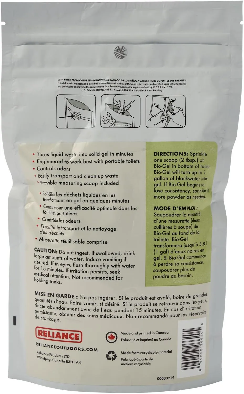 Уборка отходов переносного туалета стала намного проще. Всего 2 столовые ложки порошка для гелирования отходов Reliance Bio-Gel превращают 1 галлон жидких отходов в гель за считанные минуты.