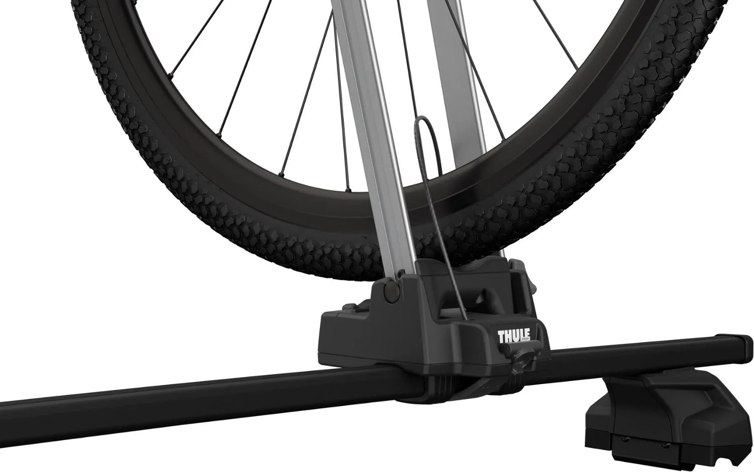 Держите свое грязное и громоздкое переднее колесо подальше от автомобиля с помощью этого надежного и удобного в использовании крепления для колес на крыше Thule.