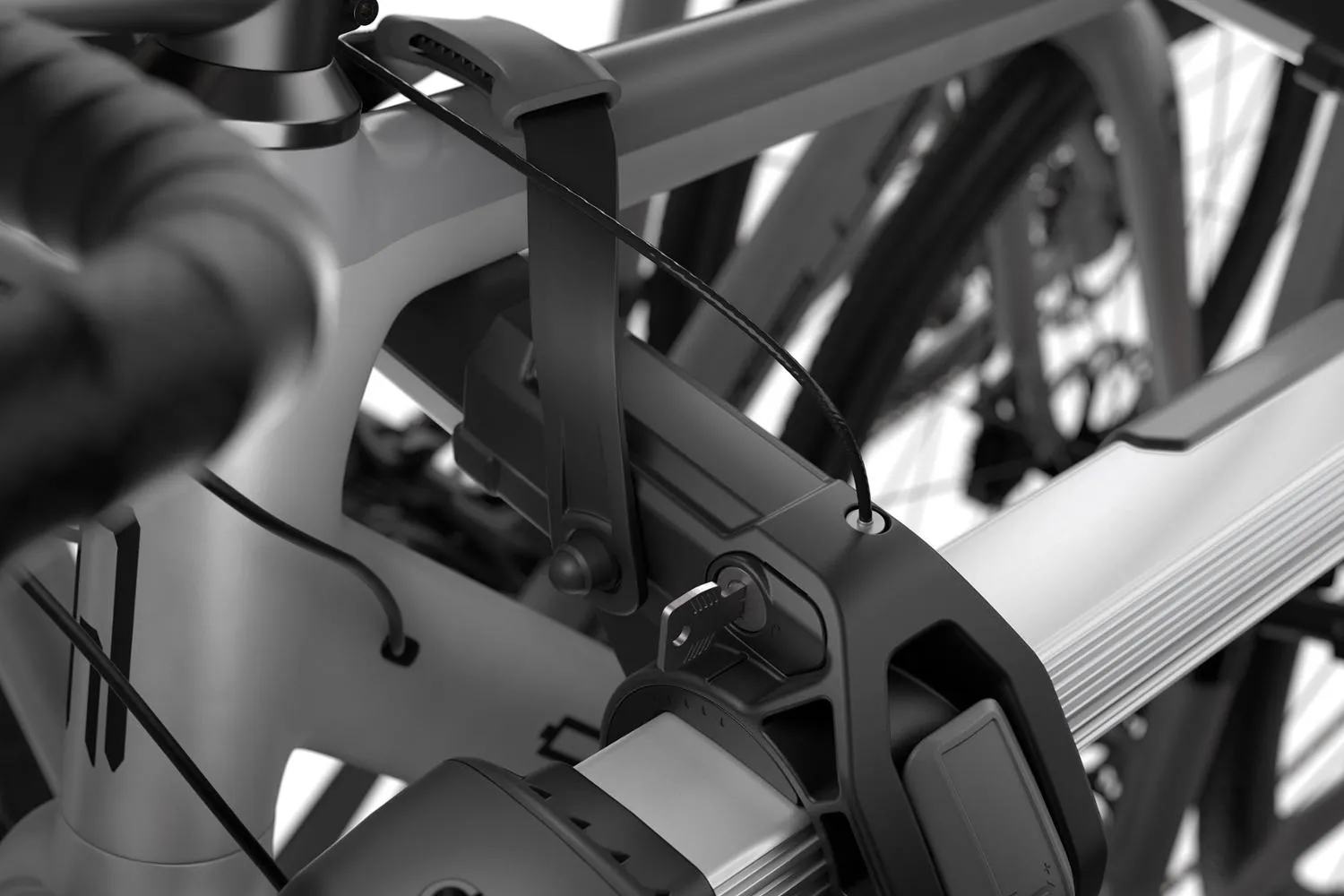 Включенные замки позволяют вам запирать велосипед на велокреплении и велокрепление на вашем автомобиле
