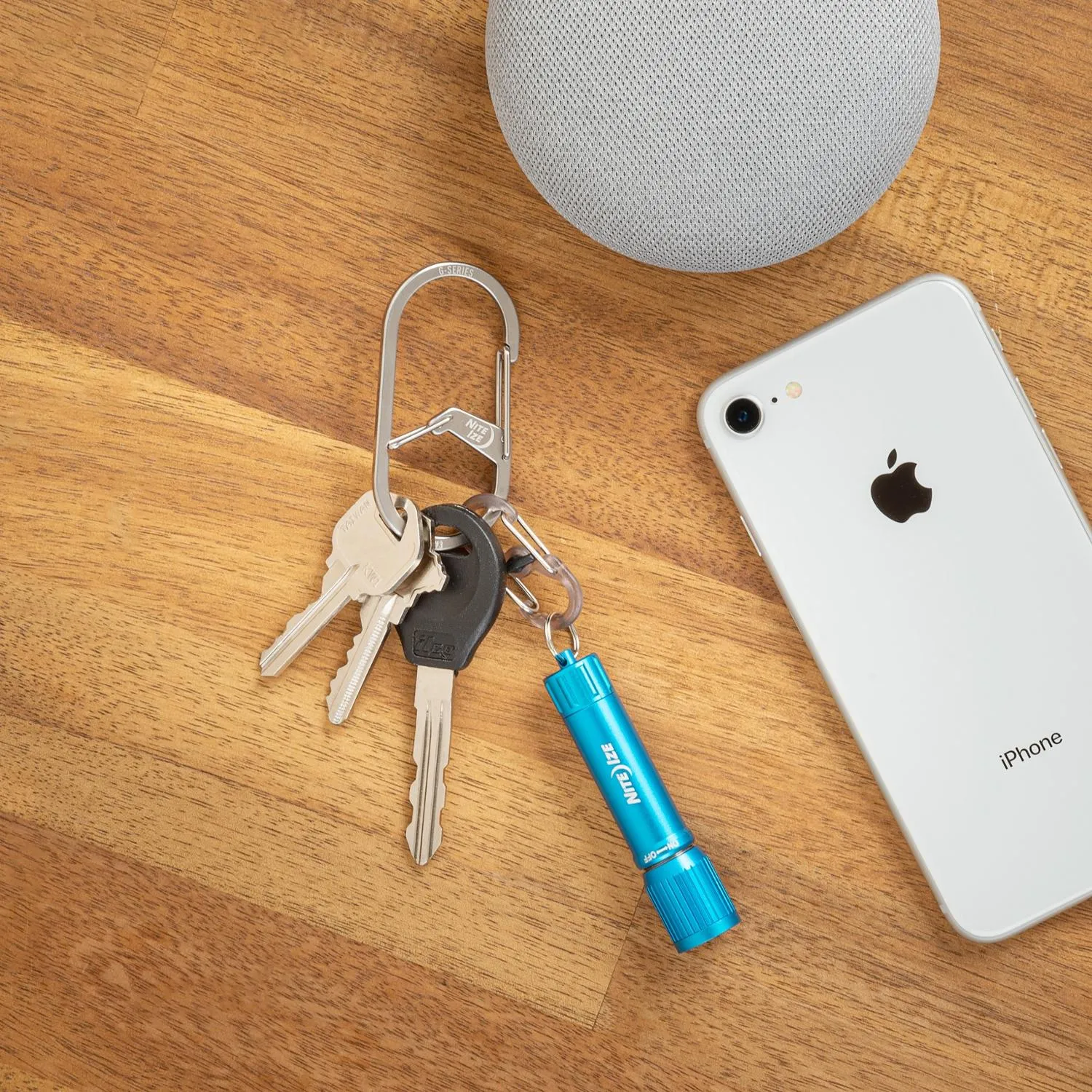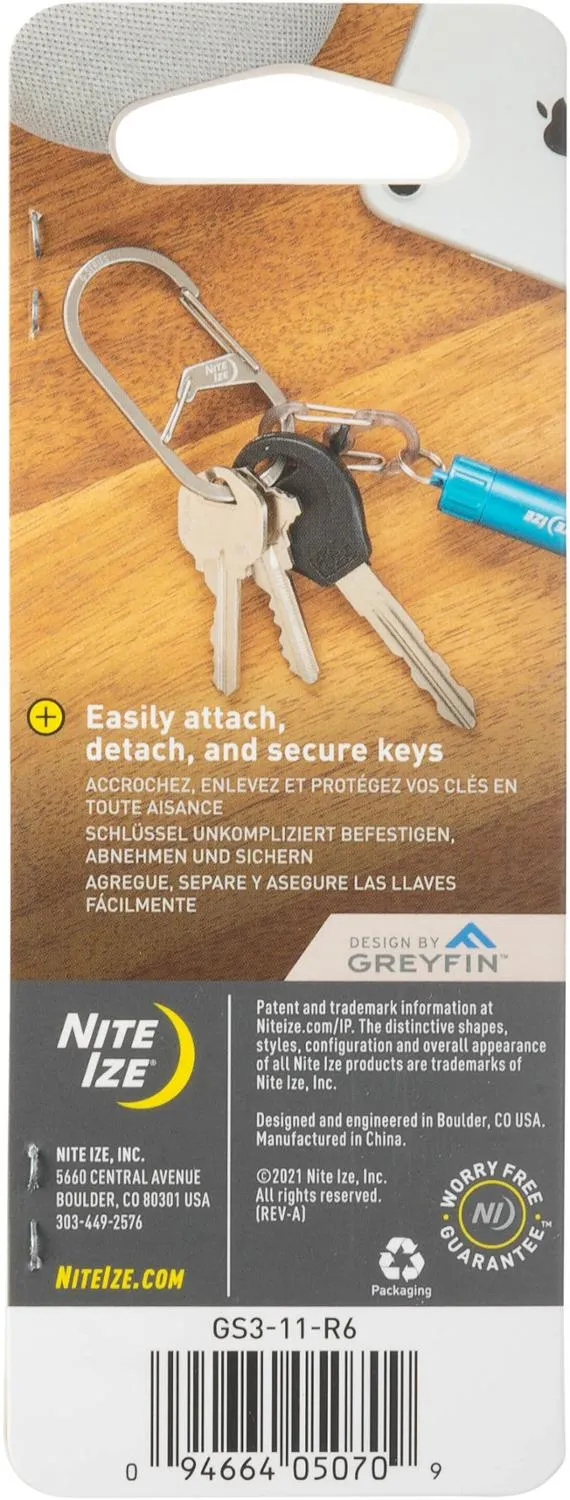 С 2 связанными, но различными камерами и прочным корпусом из нержавеющей стали, карабин-брелок Nite Ize G-Series размера 3 упрощает ношение ключей, не жертвуя безопасностью.