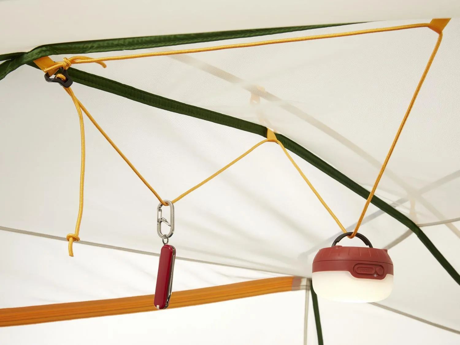 Линия для одежды на вершине палатки позволяет развешивать снаряжение или одежду