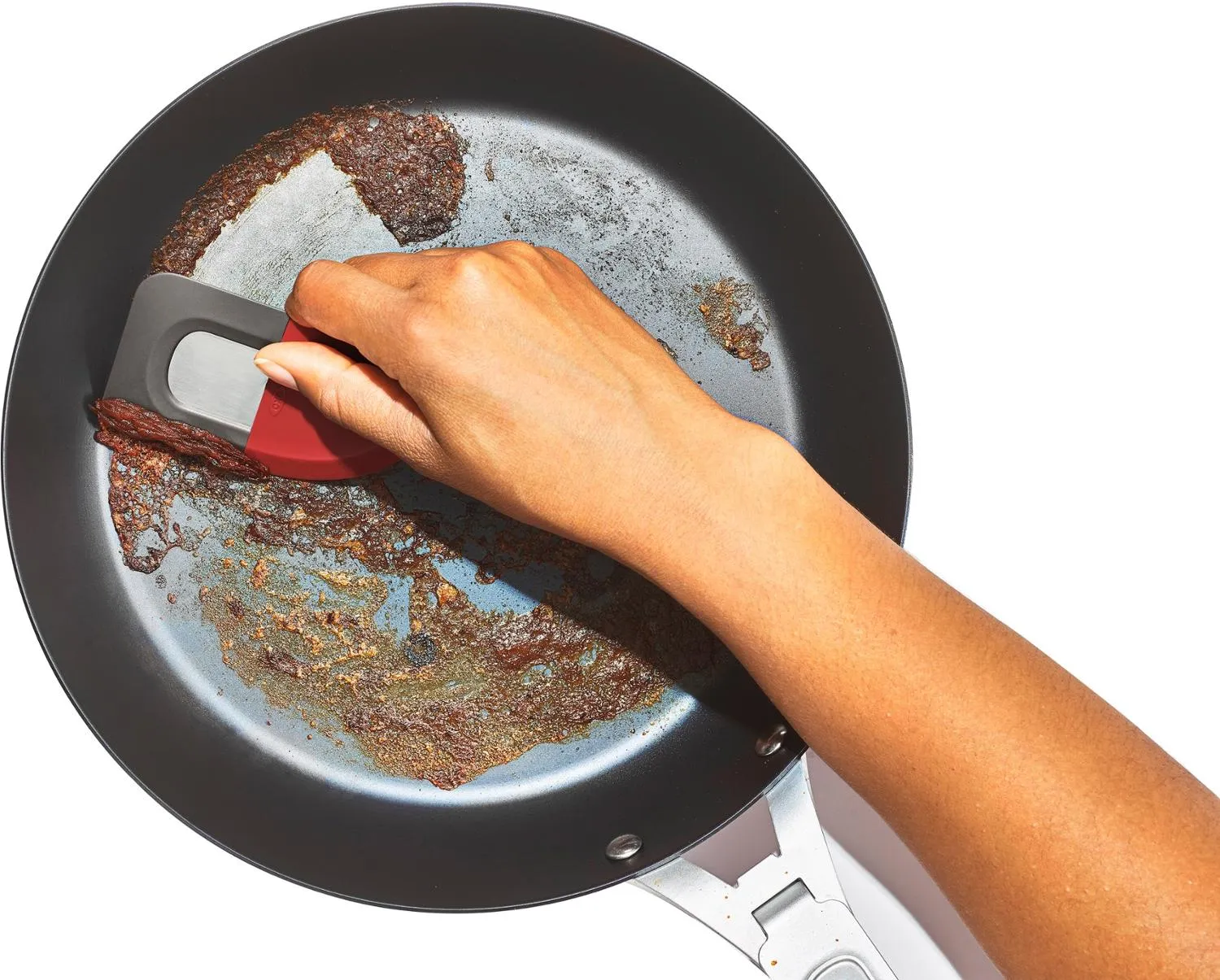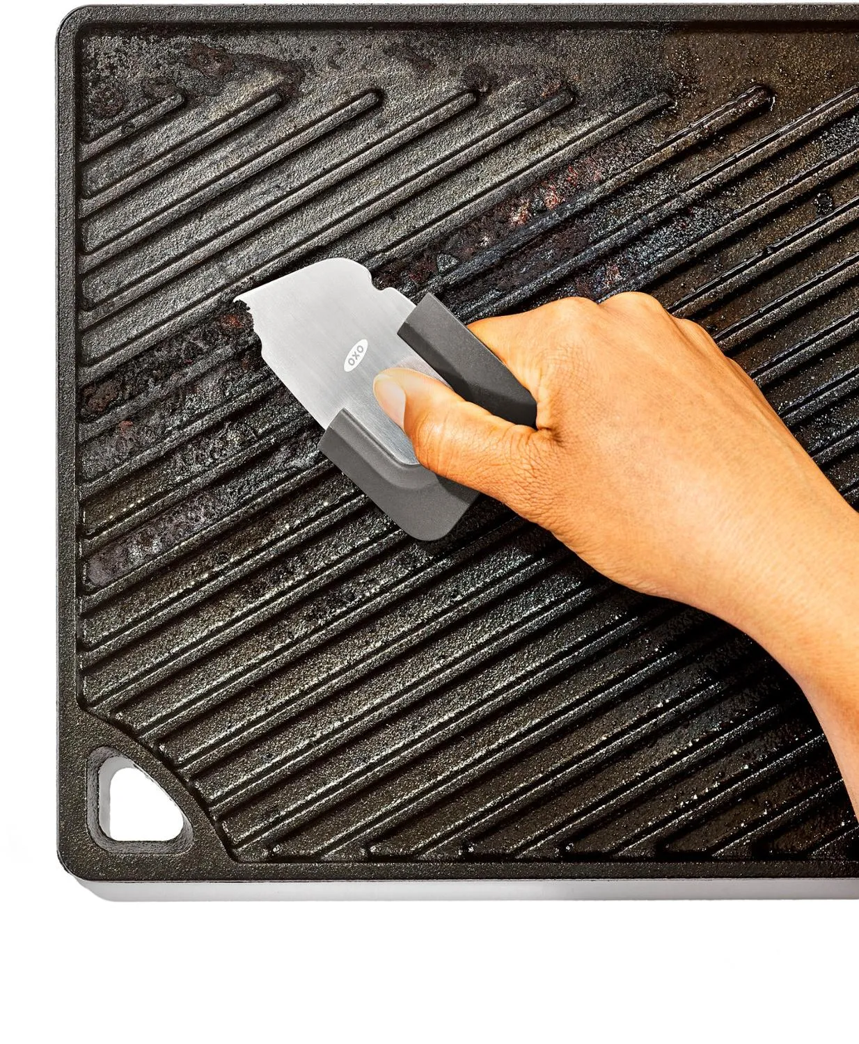 Жесткий край скребка удаляет упрямые пригоревшие загрязнения