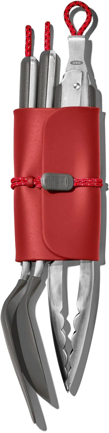 Возьмите с собой инструменты, необходимые для приготовления вкусной еды с помощью наборов для готовки на открытом воздухе OXO из 4 предметов. Он включает в себя принадлежности, предназначенные для приготовления пищи в кемпинге, и уютное место для их хранения.